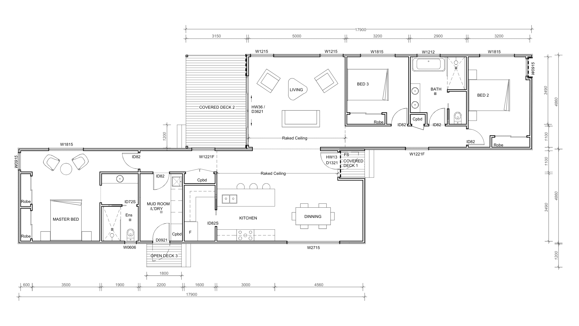 A spacious, well-zoned family home designed around flexible living and privacy. The central kitchen, dining, and living area with raked ceilings creates a generous open-plan hub, seamlessly connecting to outdoor spaces. A separate living zone adds versatility, perfect for growing families or entertaining. Bedrooms are positioned in a dedicated wing, serviced by a central bathroom, while the master suite sits privately in its own module complete with ensuite and walk-in robe. With its offset module design and thoughtful layout, this home offers both connection and retreat in equal measure